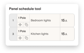 Build panel schedules easier than in a spreadsheet. Add triple and quad breakers and create circuit labels you can share with a customer. Use AI to get started with just a panel photo.
